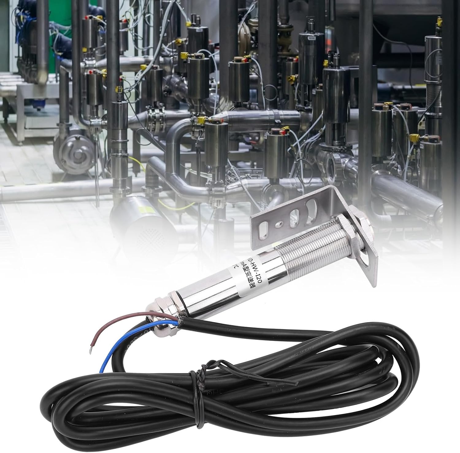 1. The sensor probe adopts non‑ induction, to use and long life. 2. The stainless steel bracket is convenient to adjust the measuring head, and the light way must be unobstructed during adjustment. 3. The electrical wire adopts high‑quality tinned shielded wire, and the output is fast and stable. 4. The metal shell comes with ×1 threaded fixing installation, double nut installation, convenient disassembly and assembly. 5. With small size, easy to carry and store, convenient to use and with good performance. Specification: Item Type: Non‑ Infrared Temperature Sensors Material: Stainless steel Purpose: Measuring water temperature, oil temperature, food, human body, ceramics, asphalt, rubber, chemicals, coal, graphite, metal, glass, etc. DC Power Supply: 10-30VDC Maximum Current: 50mA Output : 4-20mA Equipment Power Consumption: ≤0.5W Measurement Accuracy: ±1% of the value or ±1.5℃, whichever is the largest Spectrum Range: 8~14μm Response Time: 150ms (95%) Optical Resolution: 20: 1 Emissivity: 0.95 fixed Working Environment: 0~60℃; 10~95%RH (no condensation) Cable Length: Approx. 1.5meter / 4.9ft Size: Approx. 18mm / 0.7in 50mm / 2in 113mm / 4.4in Output type Line color Function 4-20mA Red +24V 4-20mA Blue output 4-20mA+ packing list: 1 x Sensor 1 x Bracket Note: 1.This series of infrared temperature sensors have poor temperature measurement effects on bright or polished metal objects.2.The metal needs to have a coating or oxide layer or paste high to achieve accurate measurement results. 3.Please note that the new type and old type of this product will be sent randomly, and make sure you will not mind before ordering.